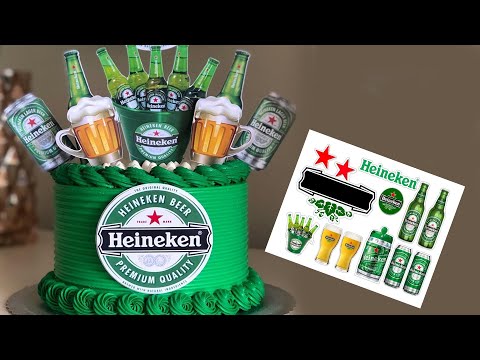 Bolo da cerveja Heineken nunca sai de moda Hoje vamos decorar um bolo com chantininho verde e um lindo trabalho de bico mais topper da cerveja ...